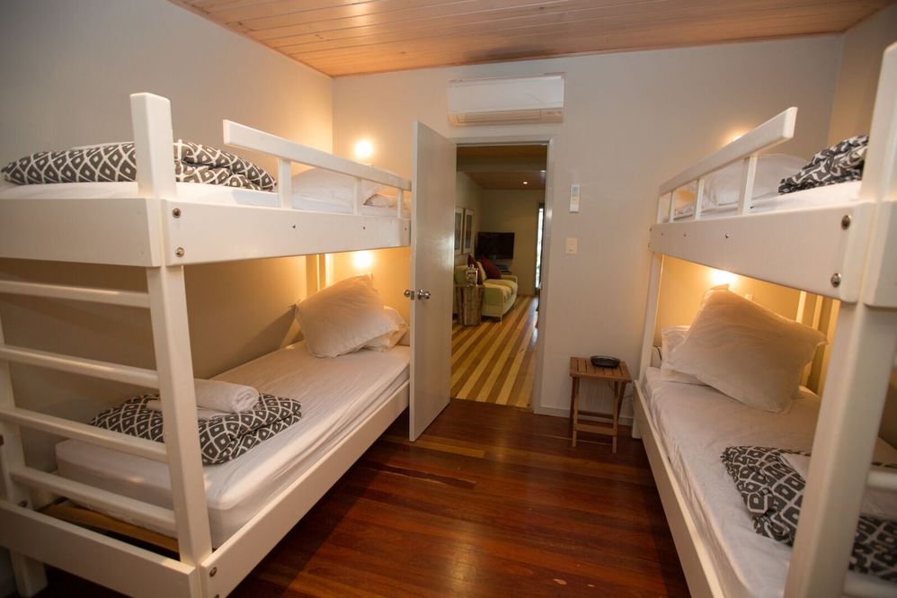The Parents Retreat being a feature and the ultimate recipe for relaxation and privacy, is situated up the stairs from the verandah you have your own sitting area with TV and DVD player, comfy king bed, ensuite plus private deck looking out across the lawn to the ocean. This is also a great separate space for working on holidays.