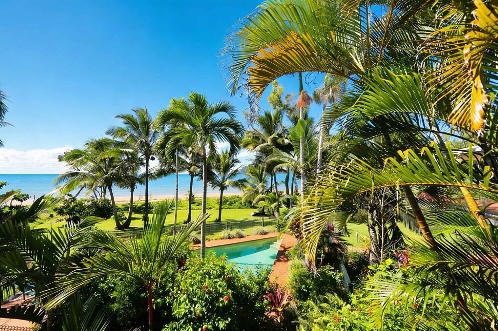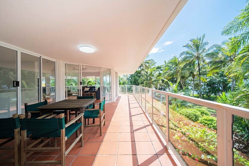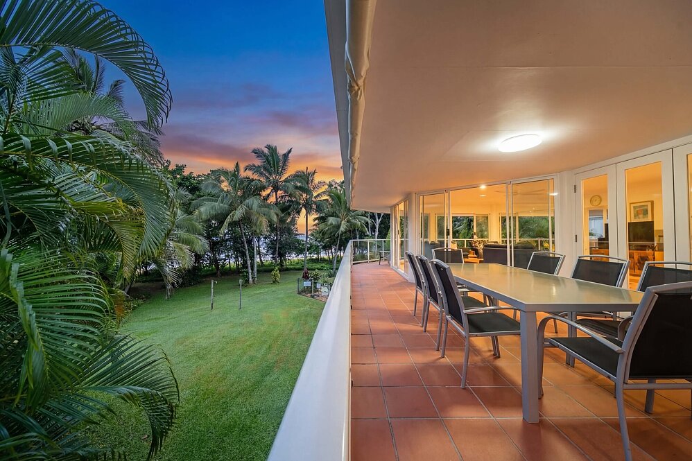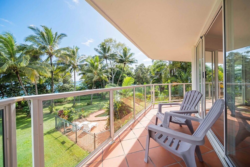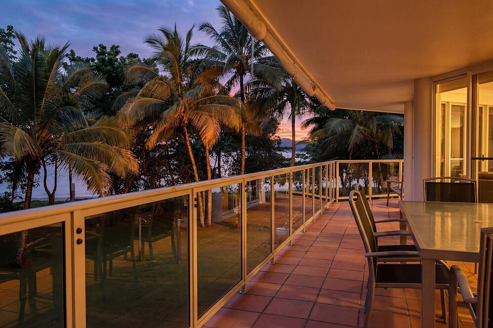 Beaches Apartments have been designed to capture every part of this terrific absolute beachfront position. Apartment 6 is surrounded by large glass sliding doors facing the Coral Sea which seems to suck the gold sand, azure water and swaying palms right into your senses. As you enter this apartment heading up the stairwell you are received by this and much, much more.