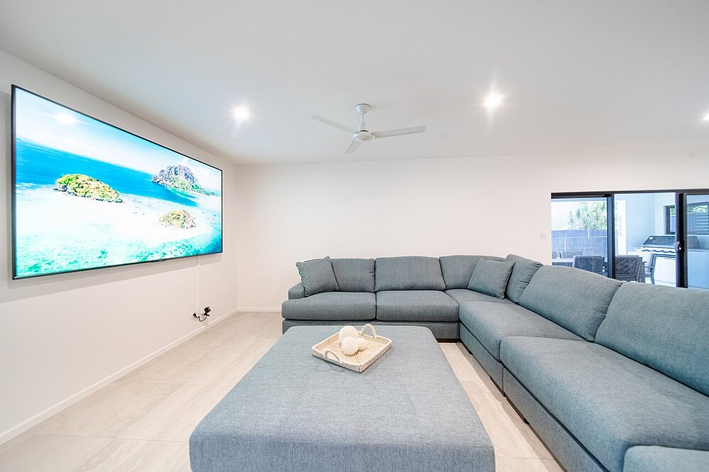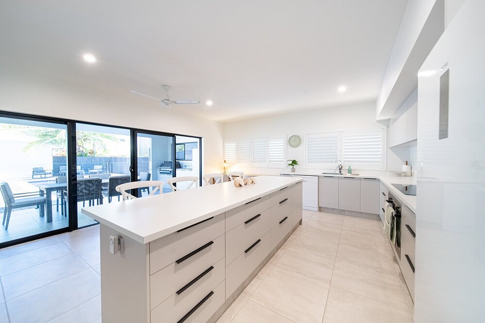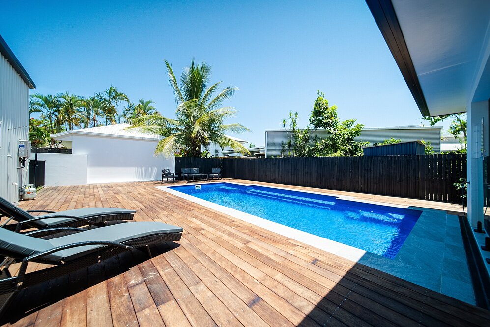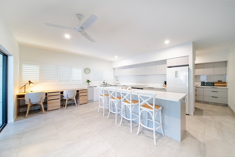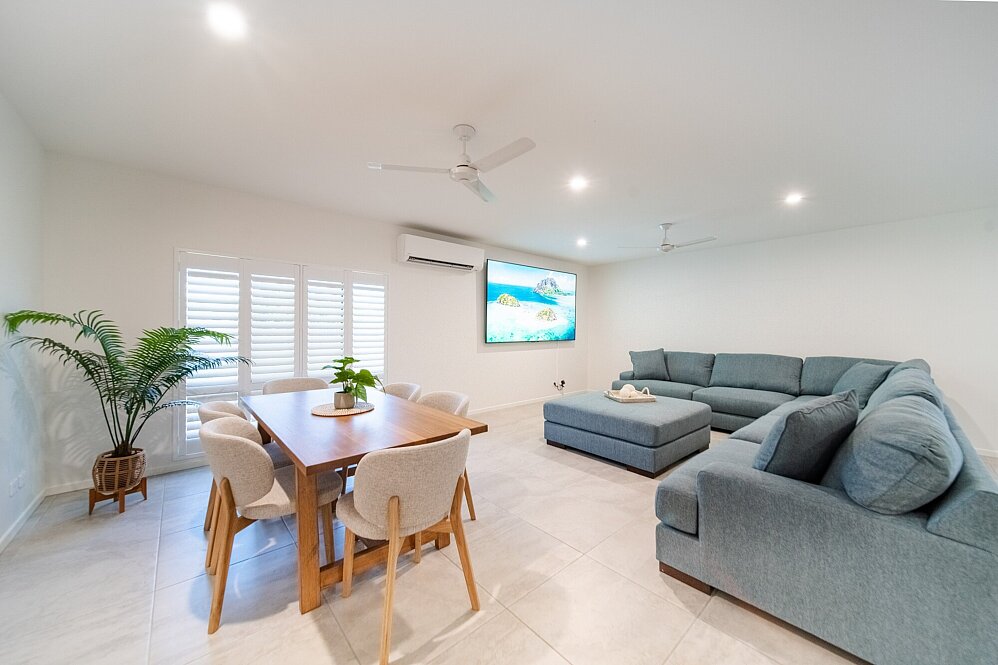 Imagine arriving at a modern tropical retreat where every bedroom has its own private ensuite—welcome to Golden Tides, a beautifully designed coastal getaway in the heart of Mission Beach. This spacious home blends relaxed beachside living with contemporary comfort, featuring open-plan interiors that flow effortlessly to the outdoors.