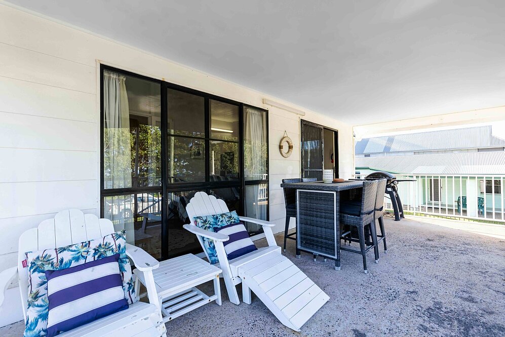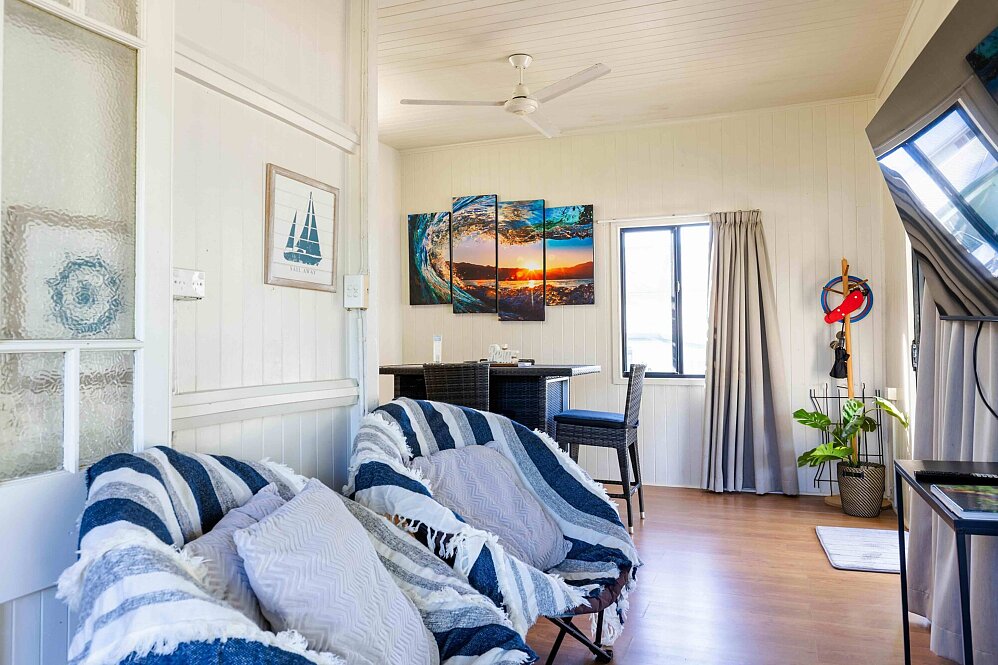 With 2 Queen bedrooms, fully equipped kitchen and a new bathroom this no fuss beach house can comfortably accommodate a family of 4 or 2 couples. The rear garden is fully fenced with loads of room for the little ones to run and play or ample of room for parking the boat.