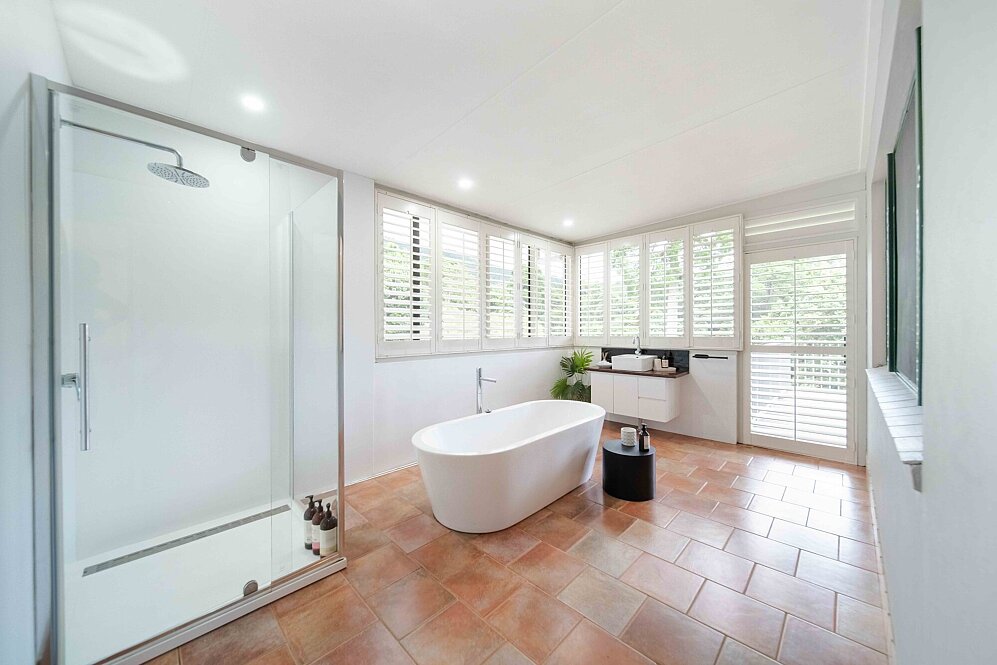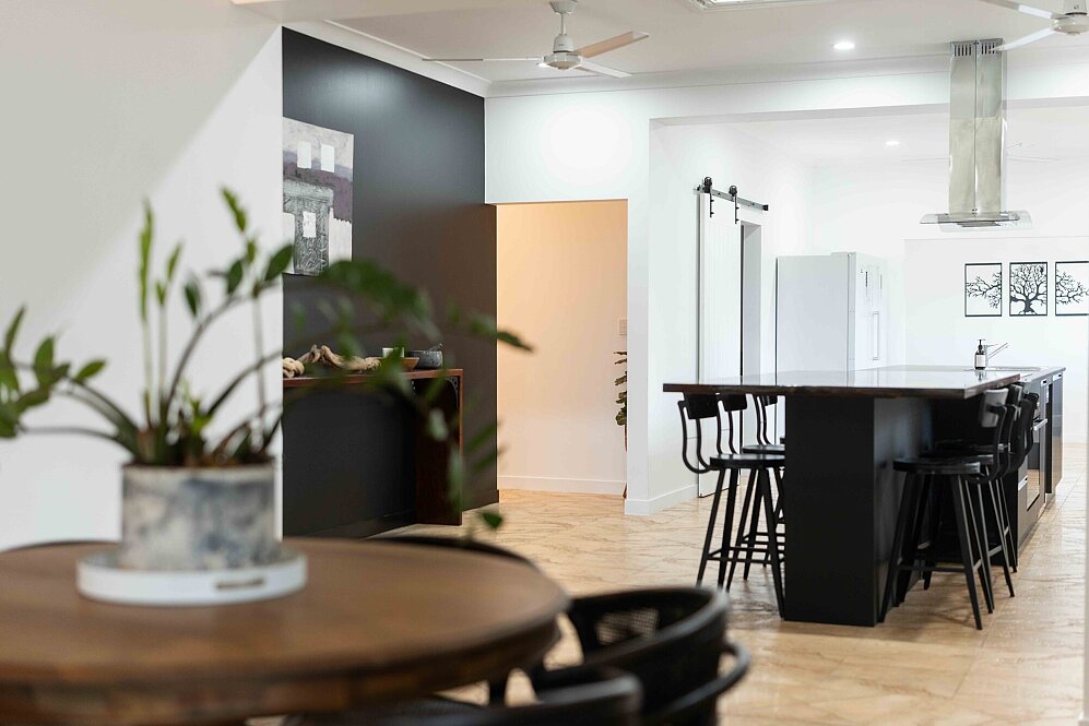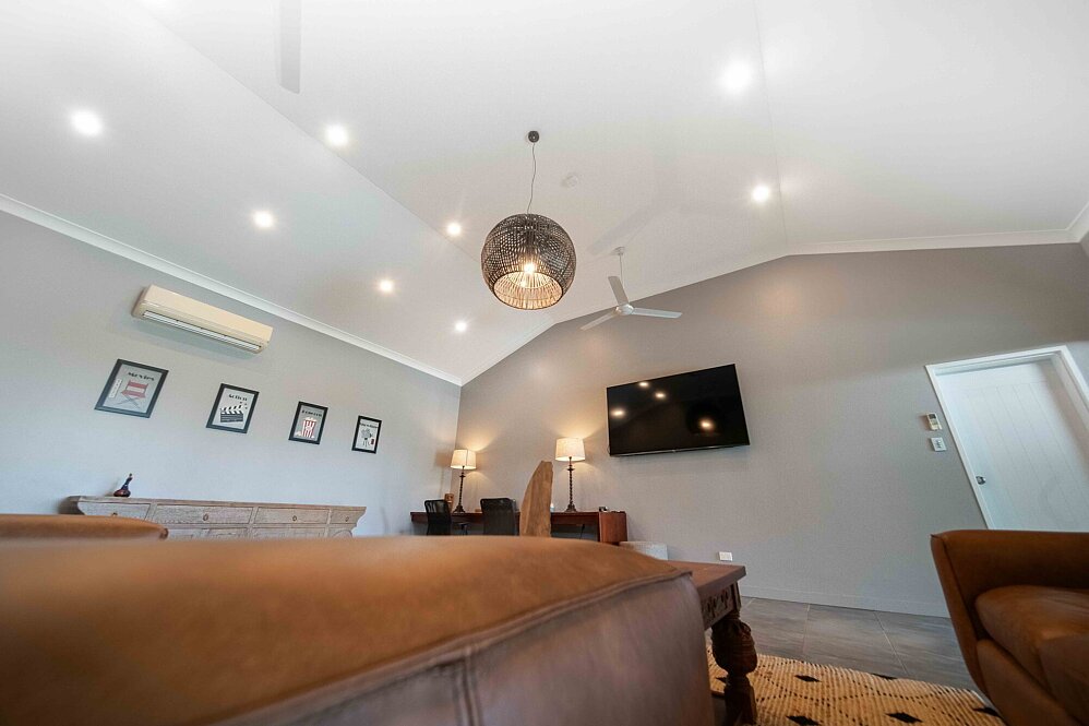 The suite comprises four king bedrooms, all with splittable beds for flexible arrangements, comfortably accommodating up to ten guests. (For bookings over 8, 2 Single Beds are provided.) Guests also have access to two shared bathrooms, a master ensuite with a bath, and thoughtfully designed living spaces, including a fully equipped kitchen, indoor and outdoor dining areas, a media/conference room, and a games room with pool table and bar nook. An elevated balcony and undercover outdoor entertaining areas allow for alfresco meals, relaxation, or simply enjoying the tranquil rainforest...