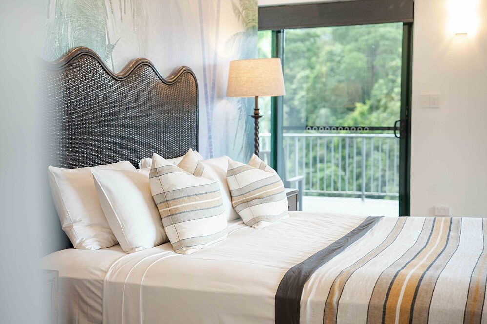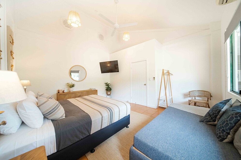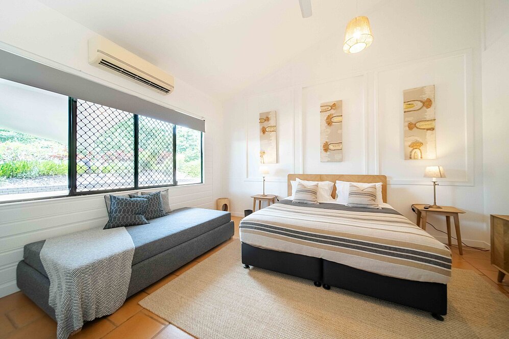 The Tranquility Upstairs Suite offers a luxurious and private escape for families, groups or friends seeking comfort, space, and a connection to nature. Situated on the upper level of the Tranquility Guesthouse within the 180-acre Tranquility Hideaway Estate, this suite provides sweeping ocean and mountain views while remaining just five minutes from the heart of Mission Beach.