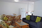 The location of this apartment is away from the main tourist area but also close to what you need, It more secluded and private down a one-way street. All you have to do is cross the small road and you're on the beach. The swimming pool was nice and of good size.